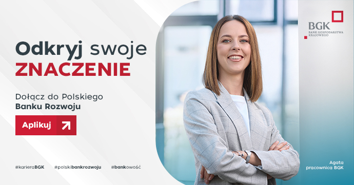 Twoja praca w BGK ma ZNACZENIE. To Twój wkład w zrównoważony rozwój społeczno-gospodarczy Polski. I Twój realny, pozytywny i widoczny wpływ na otaczającą nas rzeczywistość.